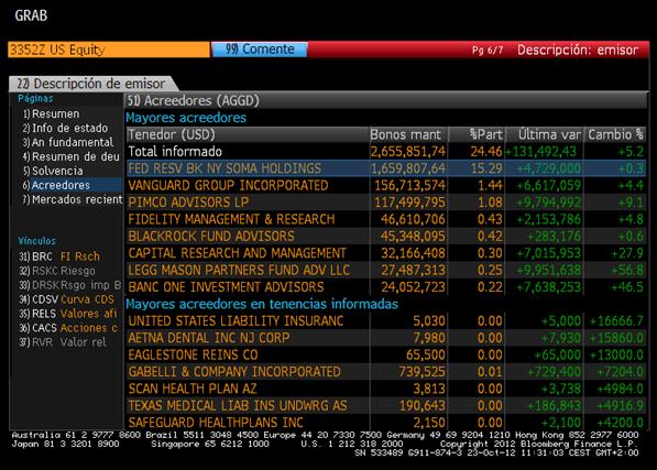 Gráfico de las tenencias de deuda pública america: